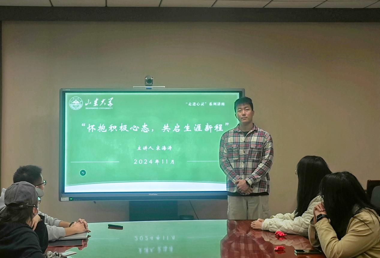 为帮助新生顺利适应硕士生的学习与生活,提升心理健康意识,近日,公司举行了主题为“怀抱积极心态,共启生涯新程”的心理健康教育讲座。本次活动由2024级硕士生辅导员宋海涛主讲,2024级硕士研究生全体参会。