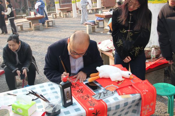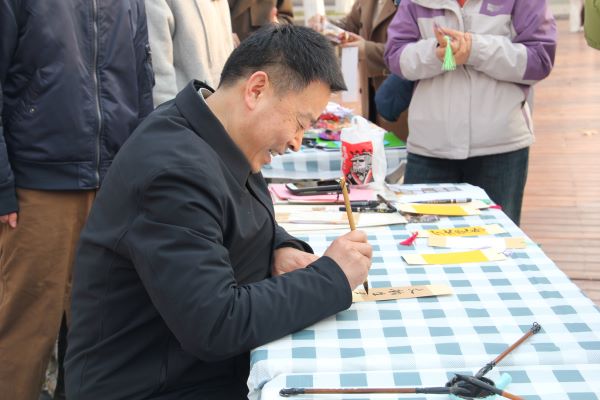 “墨香迎春”书写体验展台间,师生们运笔成风,在各色花笺上书写春诗春词,精湛书艺与笙歌文韵相互激荡,延展了大家对于传统中国“春”的理解和思考。
