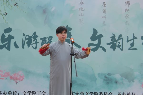 此外,现场还有来自公司党委宣传部、校图书馆、数学公司、管理公司、经济公司、护理与康复公司、化学与化工公司等多个机关或公司的教师同学上台吟诵春日诗词,为这场春日雅集增添了更多的诗意,让师生们沉浸其中,流连忘返。公司党委宣传部教师贾富康表示,在校园里邂逅这样一场充满诗意与文化气息的活动是一种美好的缘分,登台朗诵古诗词的经历更让她切身感受到了传统文化的深厚底蕴和独特魅力;哲学与社会发展公司2024级本科生洪泽宣则感慨,粤语版《一剪梅》让他听到了熟悉的乡音而倍感亲切,希望未来能有更多这样的活动,让大家在校园里也能感受到家乡文化的魅力。
