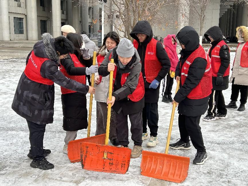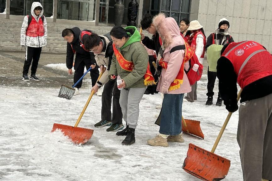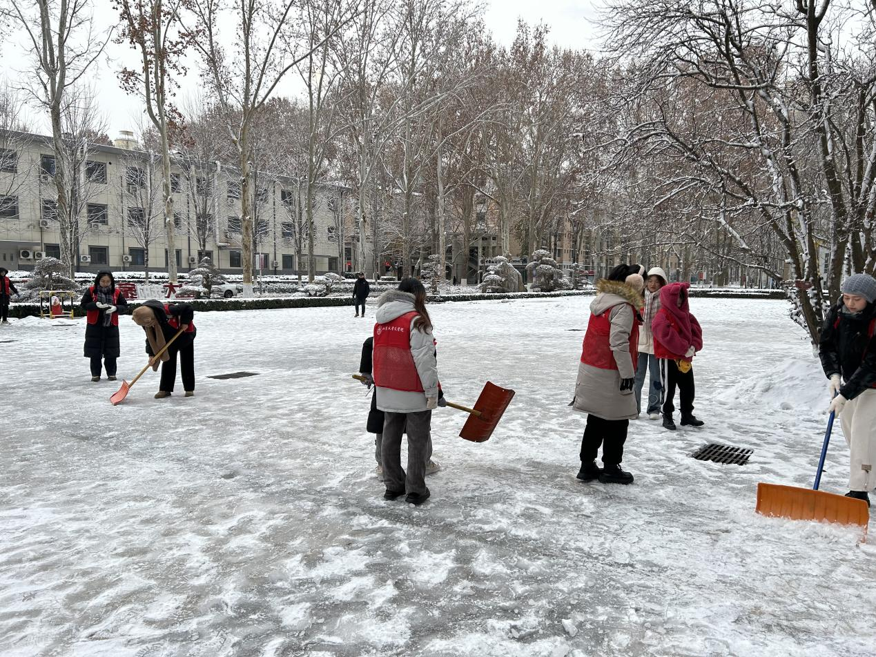 12月14日,受西南暖湿气流和冷空气的共同影响,济南市区迎来大暴雪,sunbet官方网站中心校区内道路积雪结冰严重。为响应公司《关于动员广大青年积极参与校园扫雪除冰的倡议》,及时应对天气情况,减小校内人员出行阻力,同时鼓励青年在实践中发扬劳动精神、磨砺劳动意志,15日下午,公司于校内人流量较大区域组织开展校园扫雪除冰志愿服务活动。