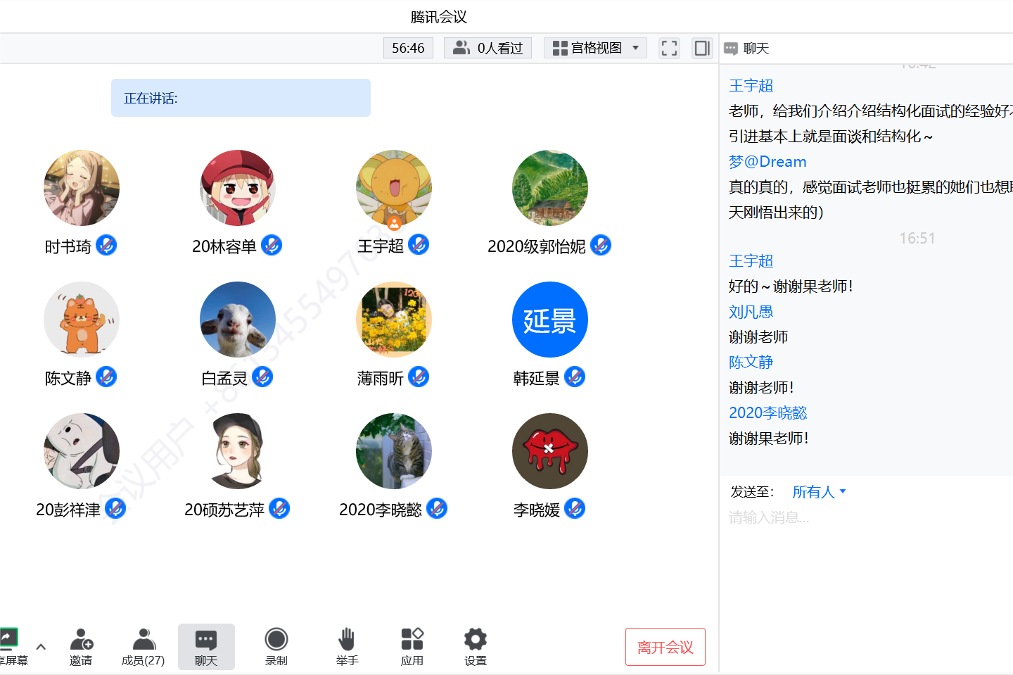 分享结束后,同学们就自身情况与老师进行了热烈的互动交流。针对员工提出的就业困惑,果娜向大家分享了就业信息获取、具体政策趋向和面谈方法建议等多方面的经验,鼓励同学们调整心态、做好准备直面挑战。