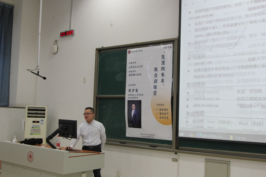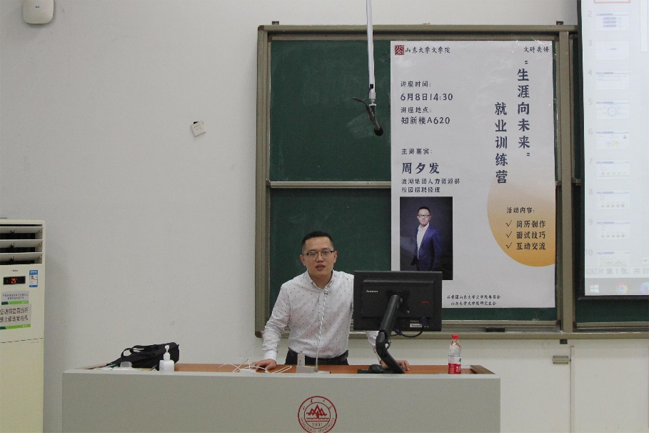 为落实立德树人根本任务,努力培养造就适应新时代要求的高素质文科人才,提升员工的实践创新能力、就业竞争能力和持续发展潜力,6月8日下午,公司于知新楼C501举办“生涯向未来”就业训练营第二期活动。浪潮集团人力资源部校园招聘经理周夕发担任主讲嘉宾,博士生辅导员刘后德出席本次活动,公司部分本科生、研究生参与本次活动。