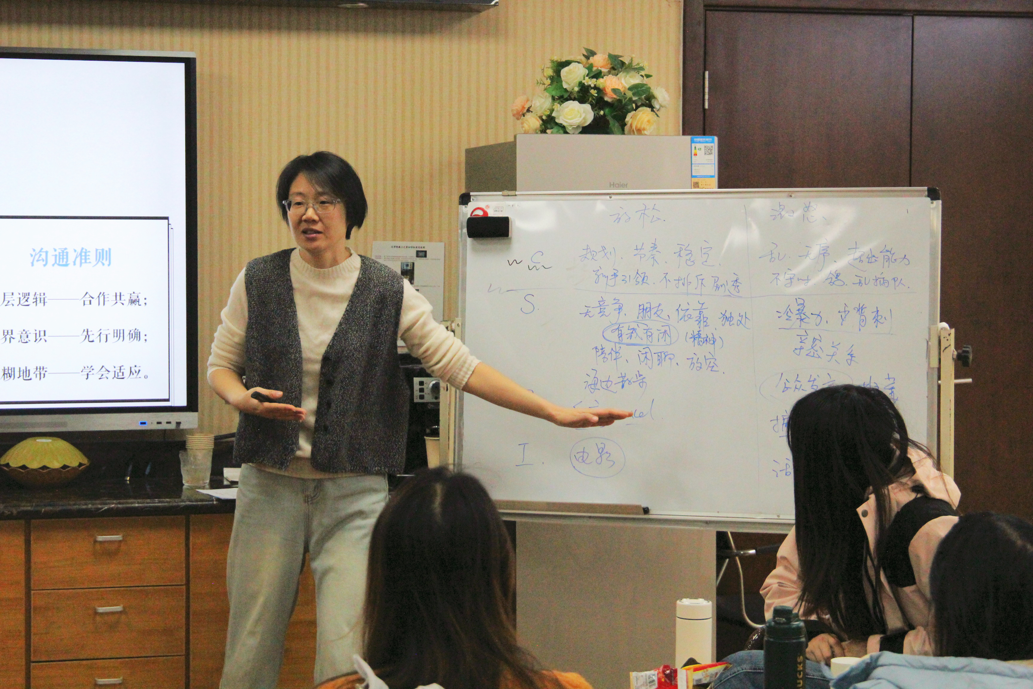 任务下达后,各小组围绕主题热烈研讨,思维碰撞间亮点纷呈。在各组分享结束后,果娜结合霍兰德模型进行了深度点评。她指出,这些性格特质没有好坏之分,是与生俱来或由成长环境塑造的,了解这些差异能够帮助大家接纳自我、减少内耗。同时,知晓他人的性格偏好与禁忌,能建立更高效的沟通准则。