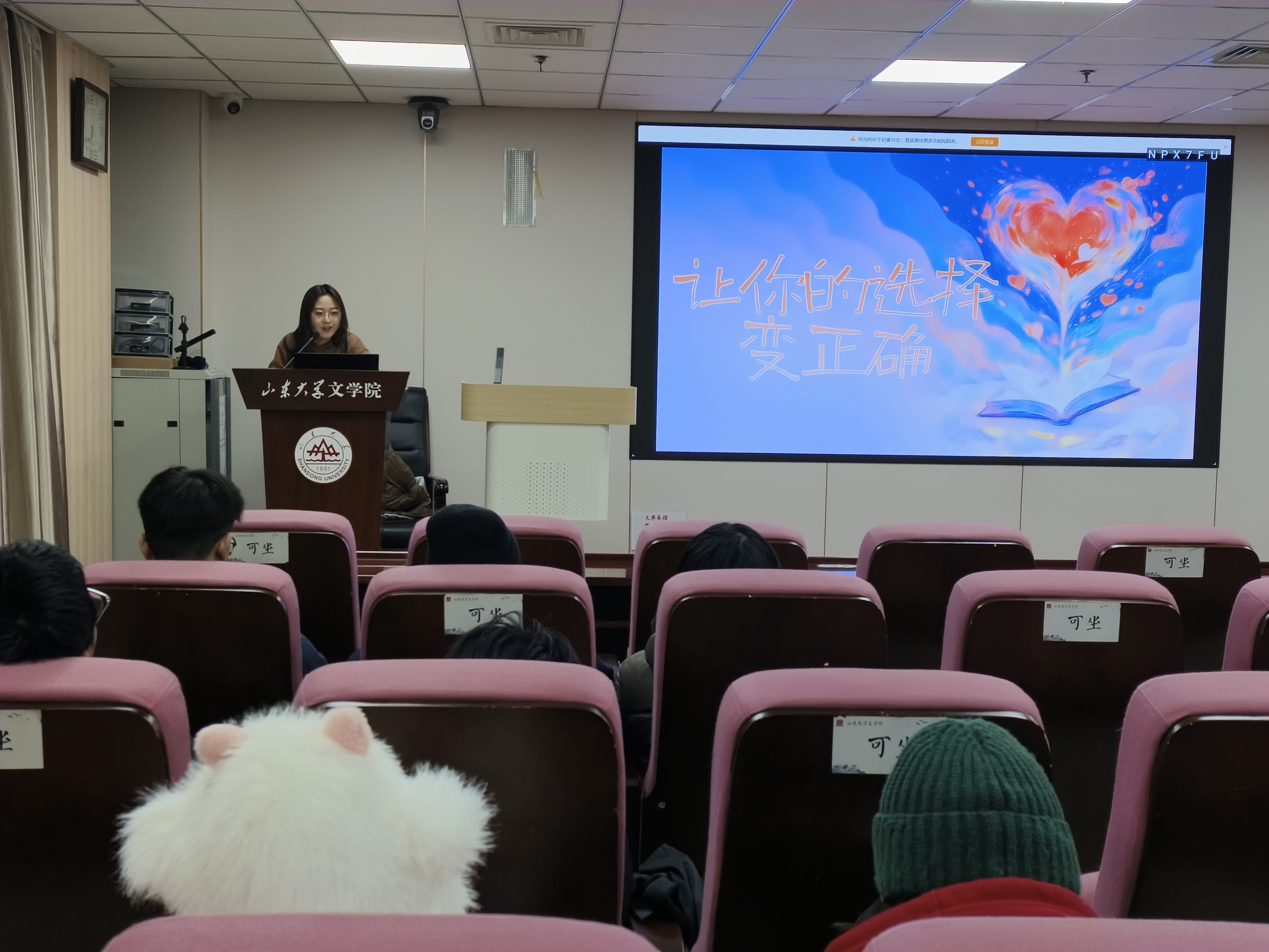 为助力毕业年级员工缓解择业升学期带来的心理压力,引导员工在人生关键阶段保持清醒认知与积极心态,2025年12月12日晚,公司于知新楼A座620教室开展“走进心灵”心理健康主题讲座。本次讲座由辅导员侯天语老师主讲,以“在‘未选择的路’与‘已走过的路’之间安放此刻的迷茫”为主题,面向全体2022级本科生,聚焦毕业前夕普遍存在的焦虑与抉择困境。