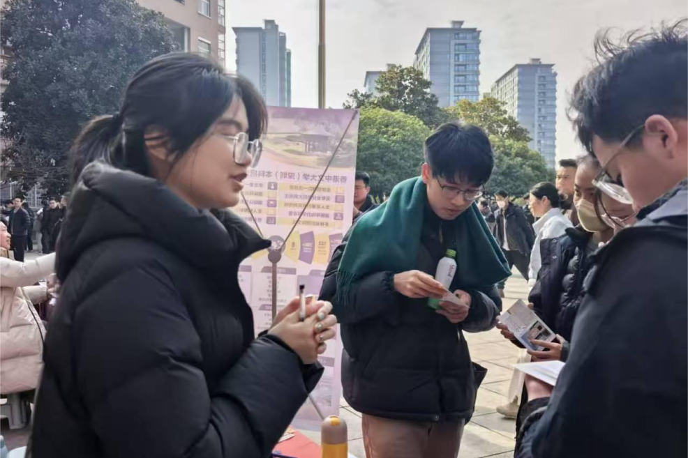 2月9日,在金华第一中学的宣讲活动中,现场气氛尤为热烈。适逢高三年级重要考试结束,大量员工涌入宣讲场地,围绕工科、医科等优势专业的课程设置、发展前景及志愿填报等具体问题踊跃提问。团队成员结合各自的学习经历与切身感受,给予了细致耐心的解答。