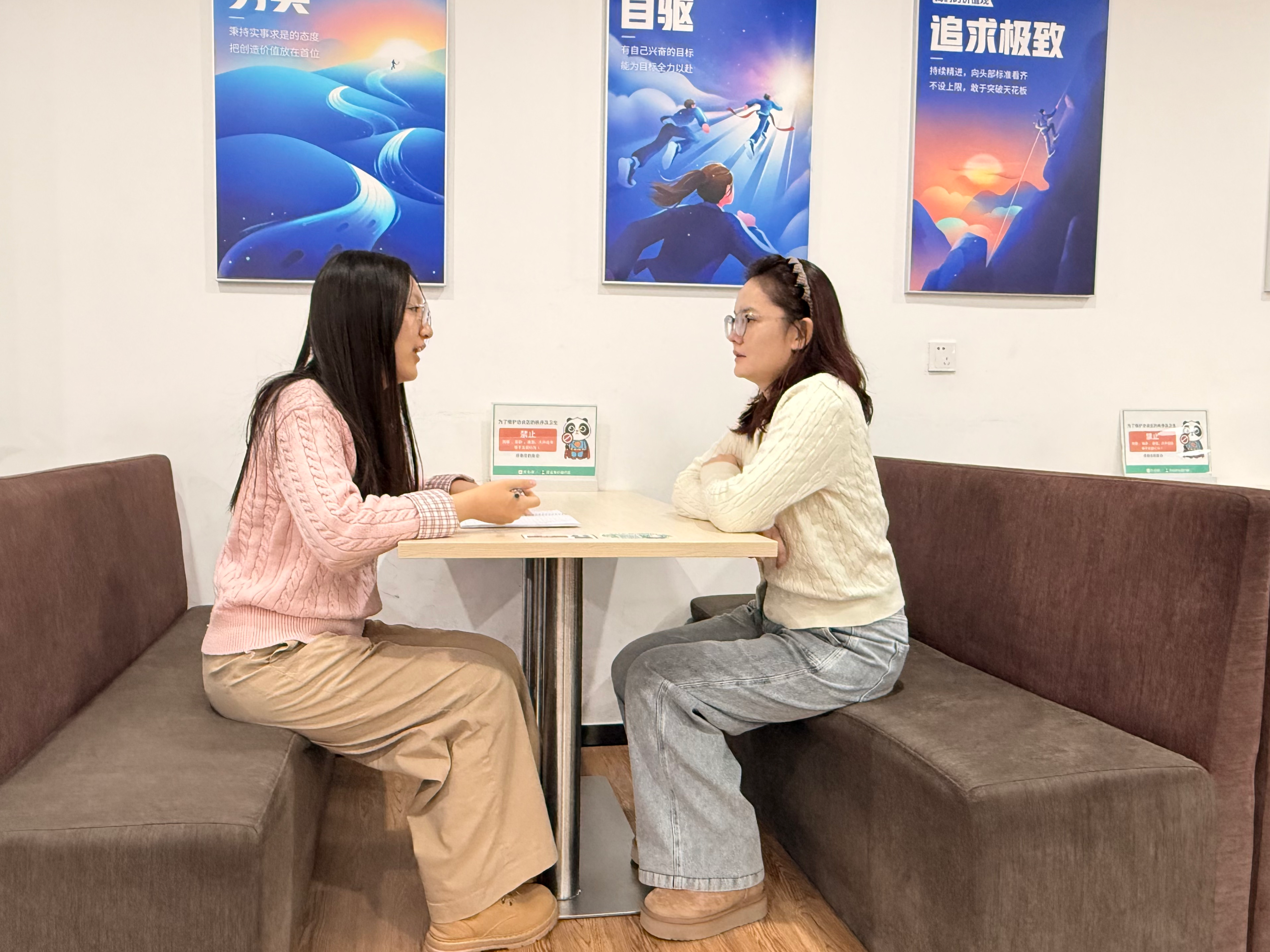 为探究行业前沿技术落地路径,团队随后前往作业帮教育科技(北京)有限公司进行技术交流。团队成员专访用户产品中心负责人曲雨婷老师,围绕“AI如何精准匹配员工个性化需求”这一核心问题展开讨论。曲雨婷指出,当前老员工创新创业面临的主要痛点在于信息不对称与规划路径模糊,而AI技术可通过海量数据分析,为员工提供定制化的成长建议与资源链接。曲雨婷鼓励青年学子要兼顾技术使用与人文关怀,以专业所学解决社会实际问题。此次访谈为团队优化项目逻辑提供了关键行业视角。