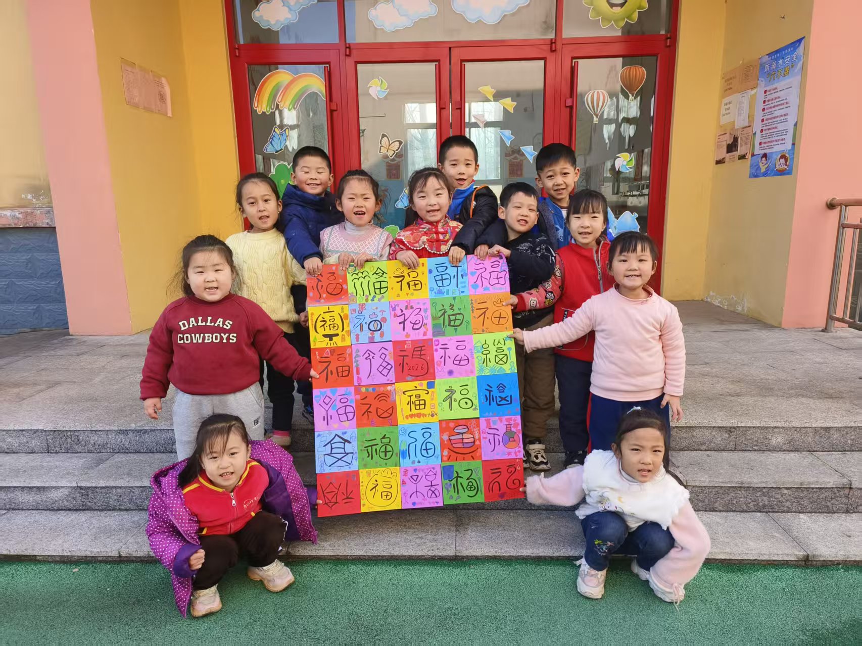 诗词唱游环节,团队成员带领幼儿吟唱《悯农》《静夜思》等古诗词,感受汉语的韵律之美,并结合肢体动作与节奏游戏,让孩子们在轻松愉快的氛围中完成了对经典文本的初步接触。针对新春将至的时令特点,团队还设计了“创意年画”活动,引导幼儿用彩笔绘制心中的团圆与吉祥,并在集体拼贴中共同完成“班级年画墙”,使传统文化在童趣活动中快乐传承。