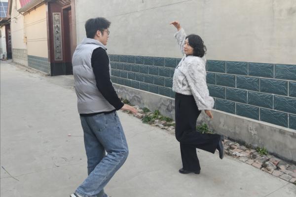 商河鼓子秧歌作为北方汉族民间舞蹈的“活化石”,以其粗犷豪放的表演风格和“伞、鼓、棒、花”的独特角色体系,承载着黄河农耕文明的集体记忆。调研期间,实践团成员实地观摩了秧歌队的日常排练与正式表演,认真观察了表演过程中的动作细节与队形变换,并用文字、影像多角度记录了鼓子秧歌粗犷豪放的表演程式与村民“全民扭秧歌”的浓厚文化氛围。
