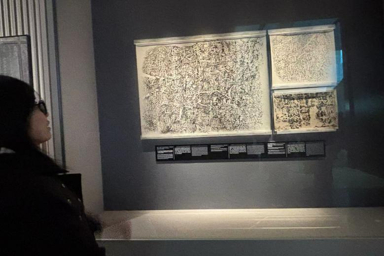 自寒假伊始,实践队足迹遍布山东省博物馆、sunbet官方网站博物馆、安徽省阜阳市博物馆、河南省开封市博物馆、开封中国翰园碑林、安徽省界首市博物馆、山东省诸城市博物馆、安徽省来安县博物馆、浙江省博物馆等地。在来安县博物馆,队员们驻足于曹寅所撰《尊胜禅院碑记》前,感受拓片对历史细节的复现;在浙江省博物馆,《兰亭序》拓本清隽飘逸的墨韵让队员们惊叹于拓印对书法神韵的忠实传递。通过与原石和拓片的对比观察,队员们深入理解了拓印“以纸为媒、以墨为介”的独特价值——它不仅是古代的复印技术,更是让石刻艺术跨越时空、与今人对话的桥梁。在安徽省界首市,实践队拜访了鱼拓非遗大师郭超,深入了解了鱼拓技艺的特色与价值。