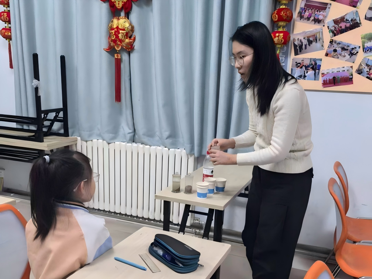 课堂上,特色课程精彩纷呈。折涵语以《山海经》为线索,带孩子们绘制神兽地图、演绎神话,感受传统文化魅力;胡芸琳将象棋规则与历史故事结合,锤炼孩子逻辑思维;罗雅文的“奇幻实验室”,用紫甘蓝指示剂实验点燃孩子们的科学热情,孩子们认真记录色彩变化日记,在实践中感受化学与美学的碰撞。