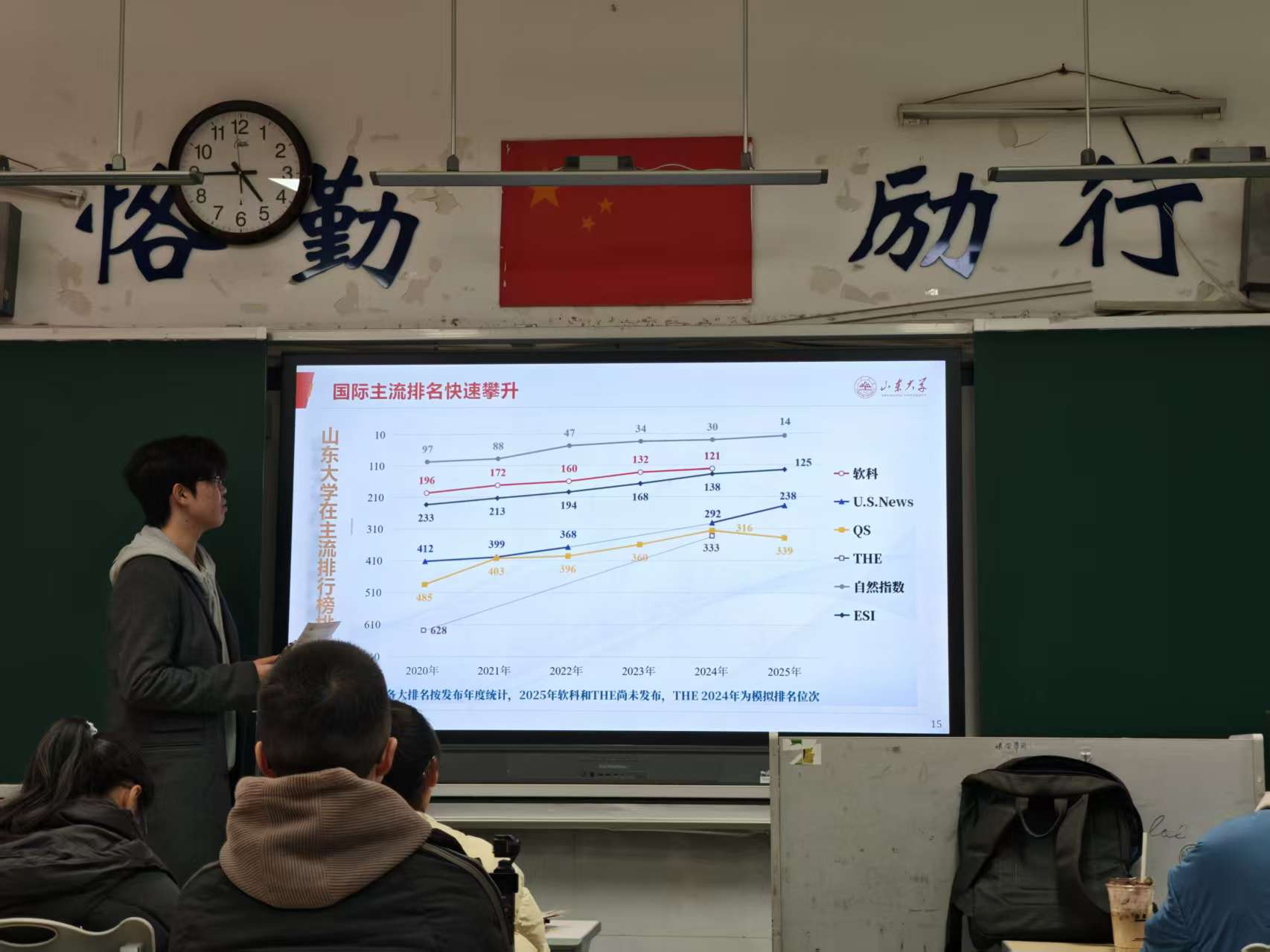 11日下午,团队于母校格致楼报告厅作专场经验分享会。主讲人宋浩宇从山大概况、老员工活、高中生活杂谈、学习建议等方面分享经验,期间冯梓诺、饶译上台解读阐释自己的学习建议。分享会临近尾声,现场气氛仍旧热烈,我队抓准时机预热宣讲会,反馈效果佳。