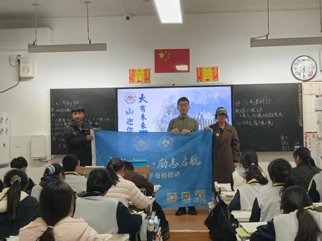 2026年1月19日,由八名山老员工组成的“泉水宣讲队”从泉城济南回到有“江北水城”之称的故乡聊城,在聊城市第一实验公司、聊城一中、聊城三中开展形式多样的招生宣讲活动。在团队成员的通力配合下,宣讲任务于2月9日顺利完成。