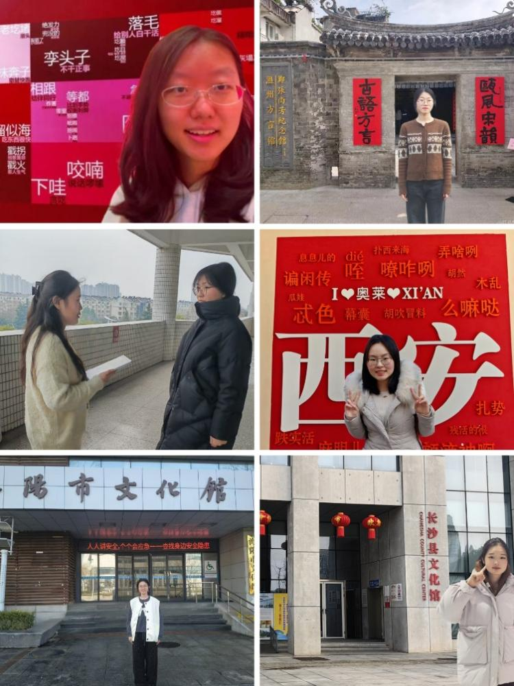 在内蒙古包头,队员深入包头市博物馆“走西口历史文化展”,梳理包头方言以晋语为母体、融合蒙古语词汇的演变轨迹,理解移民运动对地域语言的塑造作用。在湖南长沙,团队走访文化馆与田汉文化园,记录方言小品、非遗表演中的方言元素,走访并了解长辈对童谣传承的担忧与期望。