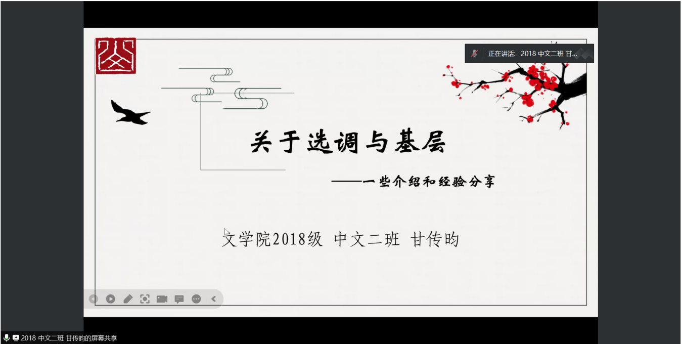 为进一步加强公司团支部建设,深入推动“五育”融合,鼓励公司学子不忘初心、助力公司学子成长成才,12月29日晚,公司团委举办“闻则菁声”团员和青年主题教育分享会。本次会议由公司团委青年发展部成员曹钟元主持,2018级优秀毕业生甘传昀与2019级优秀毕业生蔡哲宇受邀担任主讲人,公司百余位同学通过腾讯会议线上与会。