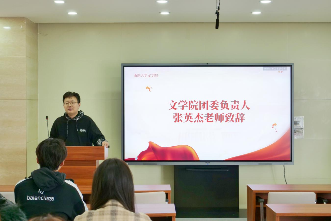 会议伊始,张英杰对本次会议召开的背景及目的进行了简要介绍,希望各位团支书能畅所欲言,共享工作积累经验,及时反馈困难需求。他指出,要扎实、规范、及时做好各类团务工作,院团委通过每月工作清单的形式明确重点、增强前瞻性,各团支部提高执行力,共同优化沟通衔接工作的流畅性、提高组织活动信息录入的规范性和及时性,做到心中有数、分工明确、汇聚合力。在主题团日活动的谋划上,各团支部要立足思想引领、把握关键节点,结合学科特色和优势,围绕文化“两创”方针打造特色品牌活动。要主动关心和服务青年成长成才需求,围绕就业、升学、论文、心理健康等急难愁盼问题,发挥青年力量,推动“学在山大,快乐成长”走深走实。