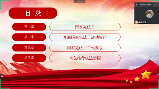 让宪法走心,使内容生动化。落实主体责任,强化宪法学习教育成果,各团支部开展了形式多样的主题班会。2021级硕士团支部开展“宪”身说法主题团日活动,共同观看了学习强国的教育视频《新宪法的故事》,大家进行了热烈讨论,并在“小打卡”微信小程序上积极发言,各抒见解。2020级汉一多班团支部开展“知宪法于心 守宪法于行”主题班会,从习近平法治思想等六大方面,详细阐述了世界和中国宪法的历史、宪法和法治与我们个人的关系、近年来国家法治建设的成就等方面内容,在治国理政重大纲领性文献的学习中,明道路、践使命。2020级中文一班团支部举行宪法学习主题班会,精心制作PPT,宣讲宪法精神。2020级中文二班团支部组织同学系统学习宪法,依托网上题库,进行宪法知识竞赛。2021级汉一多班团支部开展“学宪法 讲宪法”主题班会,讲解宪法条文,高效普法;2021级中文一班团支部除了宣传宪法外,还向同学们介绍普及《民法典》、《教育法》和疫情防控相关法律法规。