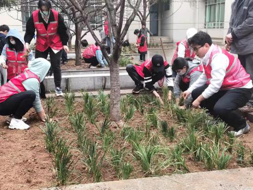 拥抱美丽春天,呵护绿色校园。各团支部积极开展线下实践活动,号召同学们感受绿色的生活方式,养成绿色低碳的生活习惯。2020级中文一班团支部开展绿色创建劳动教育社会实践活动,在公司物业老师的帮助下,发动团员助力校园绿化。2020级中文二班团支部在团支书的带领和物业老师的帮助下种植花草,为校园增添绿色生机。2021级强基班、中文一班团支部开展校园清扫活动,以实际行动共建绿色校园。2021级闻一多班团支部举办“我和春天有个约”主题团日活动,发动同学们用镜头记录春天讯息,在寝室里种下绿植,在生活中体味绿色,呵护春天。