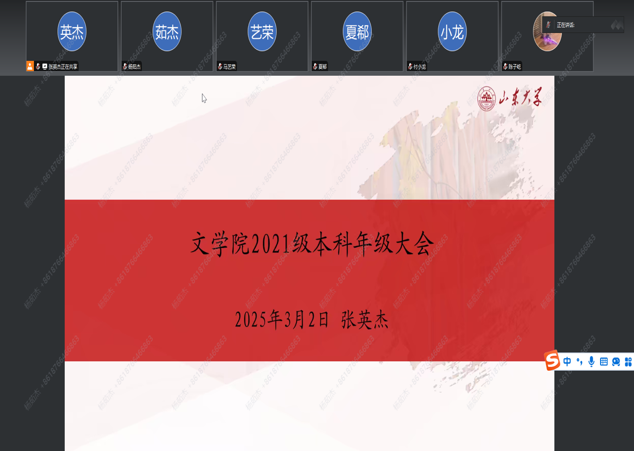 2025年3月2日16:00,2021级本科生年级大会在线上顺利召开。此次大会由2021级全体本科生参加,辅导员张英杰担任主持人。