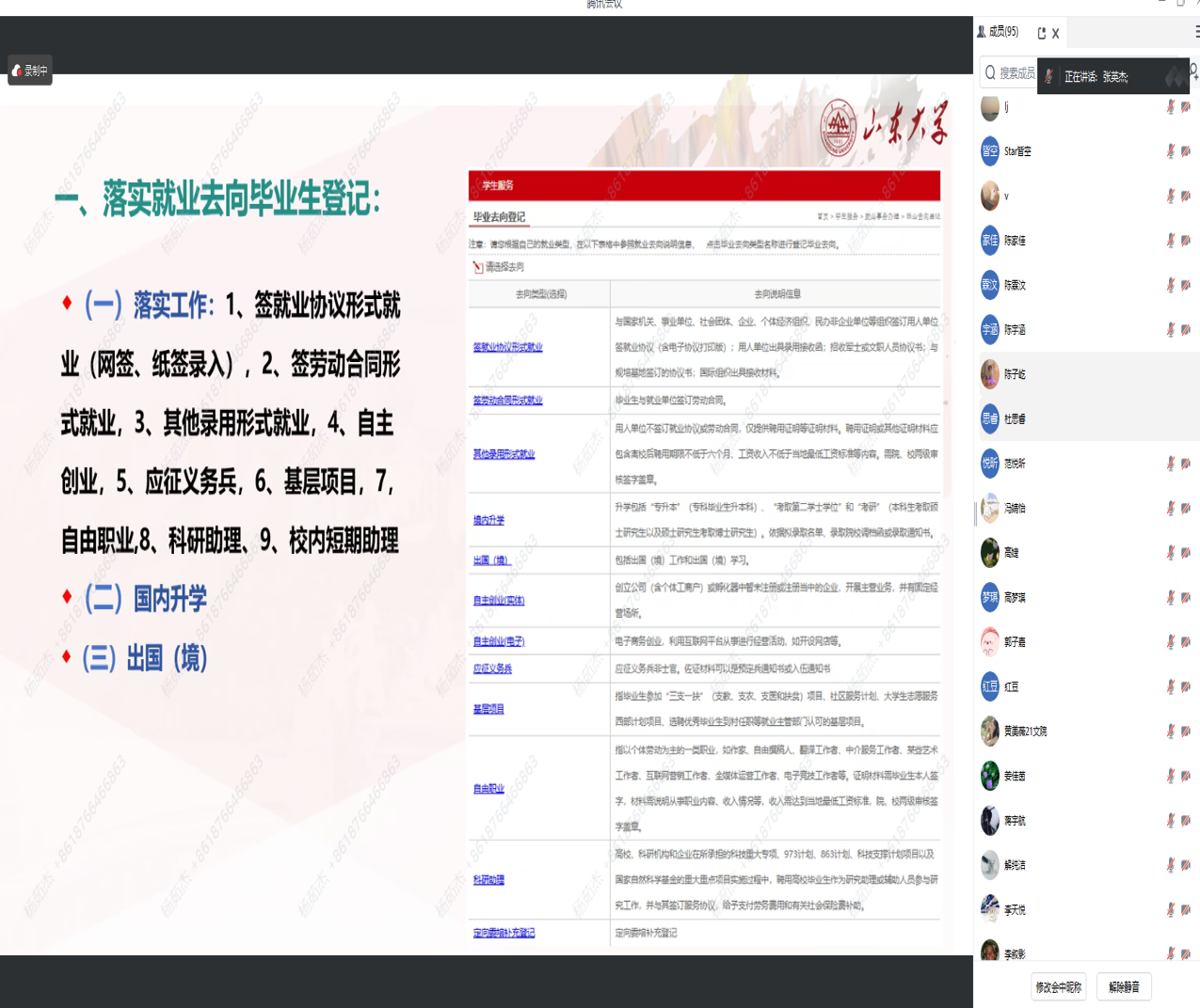 随后,张英杰详细讲解了本科生毕业去向登记的重要性和具体流程,强调了准确填写信息对于公司统计就业率、提供就业服务等方面的重要性。他还在会议中组织同学们积极填写《sunbet2025届本科生毕业去向调查》问卷。此外,针对未就业的同学,他提醒大家及时在系统内填写实际情况并积极寻求公司的帮助,他也为尚未落实去向的同学提供宝贵的建议和帮助。