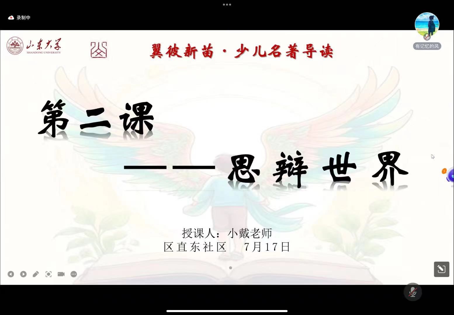 为提升社区儿童阅读兴趣,丰富孩子们的精神世界,公司“翼彼新苗”赴济南市历城区区直东社区少儿名著导读实践团队于7月10日至8月17日开展社会实践活动,带领社区儿童阅读经典著作,提升阅读素养。授课前,团队成员综合考虑社区儿童年龄特点,认真查找文献资料,精心设计了一系列符合青少年成长规律的课程。团队成员认为,打开一本书,就如同在不同书籍所构筑的世界中穿梭。在该观念基础上,实践团队以“梦境旅行”为核心设计了主题课程。