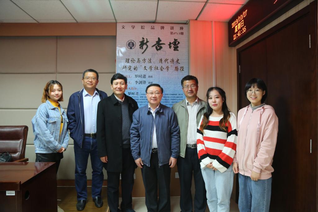 10月27日晚6点半,苏州大学特聘教授、博士生导师、苏州大学古典文献研究所所长罗时进做客公司“新杏坛”,以“理论与方法:清代诗史研究的‘文学社会学’路径”为题,在知新楼A620举办学术讲座。讲座由公司李剑锋教授主持,经理杜泽逊教授、孙学堂教授等部分师生共同聆听了本场讲座。