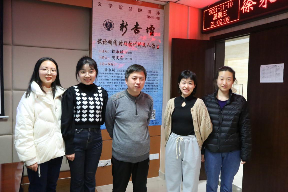 11月10日晚7时,江苏省社会科公司文学研究所所长、《明清小说研究》主编徐永斌研究员做客第299期“新杏坛”,通过腾讯会议为校内外200余名师生作题为“试论明清时期扬州的文人治生”的学术讲座。本次讲座由sunbet教授樊庆彦主持,sunbet师生在知新楼A620室观看讲座。