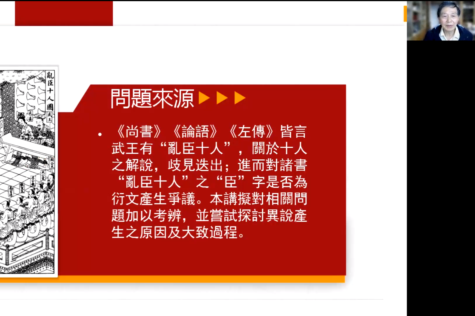 讲座开始前,杜泽逊对赵生群的研究领域和成果作简要介绍,高度肯定了赵生群在《左传》《史记》研究中的成就。讲座伊始,赵生群向大家介绍了本次讲座的内容,分别从旧注对“予有乱臣十人”的解说,“乱臣”与“十人”,文母与邑姜,“妇人”“殷人”“归人”,十人何所指,旧注演变之原因及大致过程六个方面展开。赵生群通过梳理“乱臣十人”旧注指出何晏引马融说、孔颖达引郑玄说及陆德明《释文》解说十人所指,次序虽有不同,而名号无别,似乎无可怀疑。然而文母为文王之妻,武王之母,武王无以子臣母之理。职此之故,异说纷起:有以己意增删十人者;有以“臣”为衍文者;有以“妇”字为误文者。赵生群根据文献作出论断,文母不当在十人之列。列文母于“乱臣”既不合理,于是宋代刘敞、宋代陈祥道、清代赵翼等主张以邑姜代替文母。对于文母与邑姜的争论,赵生群认为刘敞曰“子无臣母之理”,故创为新说,以邑姜代文母,以足十人之数,然出于猜测,于义亦有未安:邑姜为武王之妻,王后与天子等尊,称臣亦非所宜。前代学者亦指出邑姜代文母不可取,如清代顾炎武、惠栋等。此外,赵生群认为就文法、文义而言,“有乱十人”不可通。如作“有乱臣十人”,则与文母或邑姜身份不合,二者难以兼容;如无文母或邑姜,则又不足十人之数。现今所见马融、郑玄、陆德明注“乱臣十人”之文字,皆刻意避开“臣”字,后人或于文母、邑姜加以取舍,皆无法令人信服。