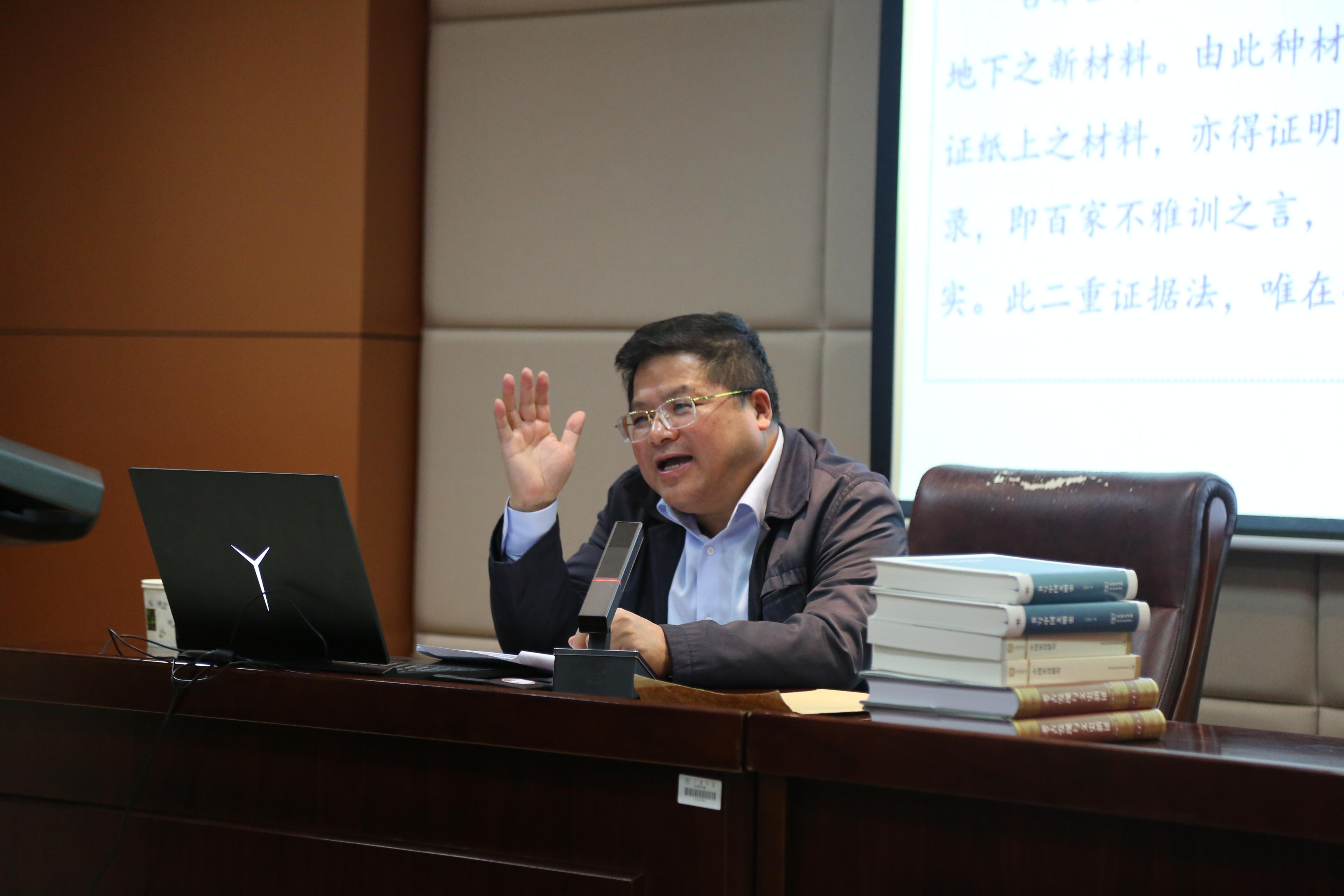 杜泽逊经理主持了此次讲座,他介绍江先生的治学特点是文史结合、经世致用,称赞江先生“上下古今,亦文亦史,融会贯通,游刃有余”,在潜心学术、立德树人诸方面成就卓著,并强调了解历史对于文学研究在方法和思路上具有重要价值。