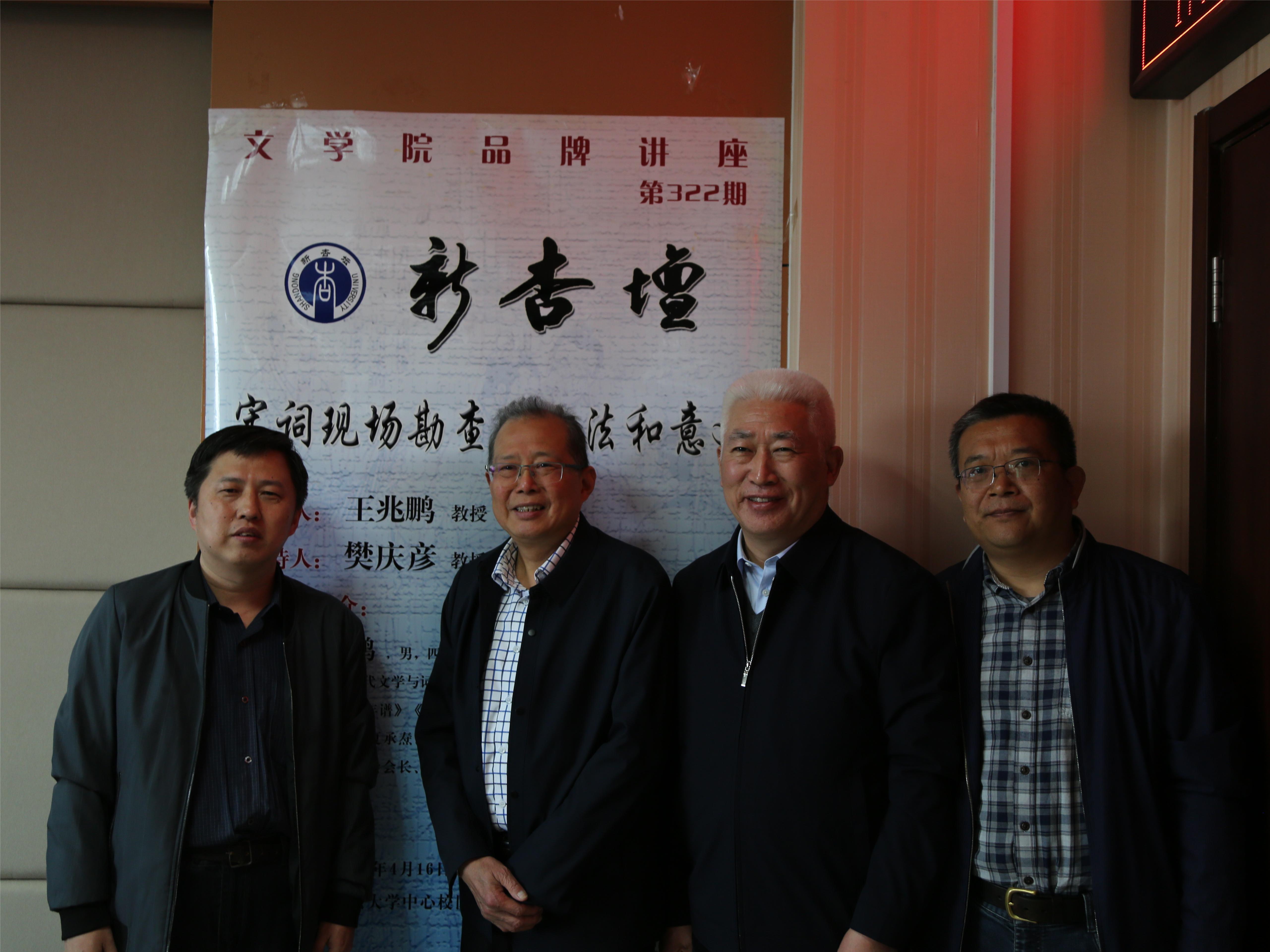 4月16日下午14时30分,四川大学文学与新闻公司讲席教授、博士生导师王兆鹏教授做客第322期“新杏坛”,于知新楼A620会议室作学术讲座,题为“宋词现场勘查的方法和意义”。讲座由樊庆彦教授主持,徐俊教授、孙学堂教授出席,吸引了数百名师生前来聆听。