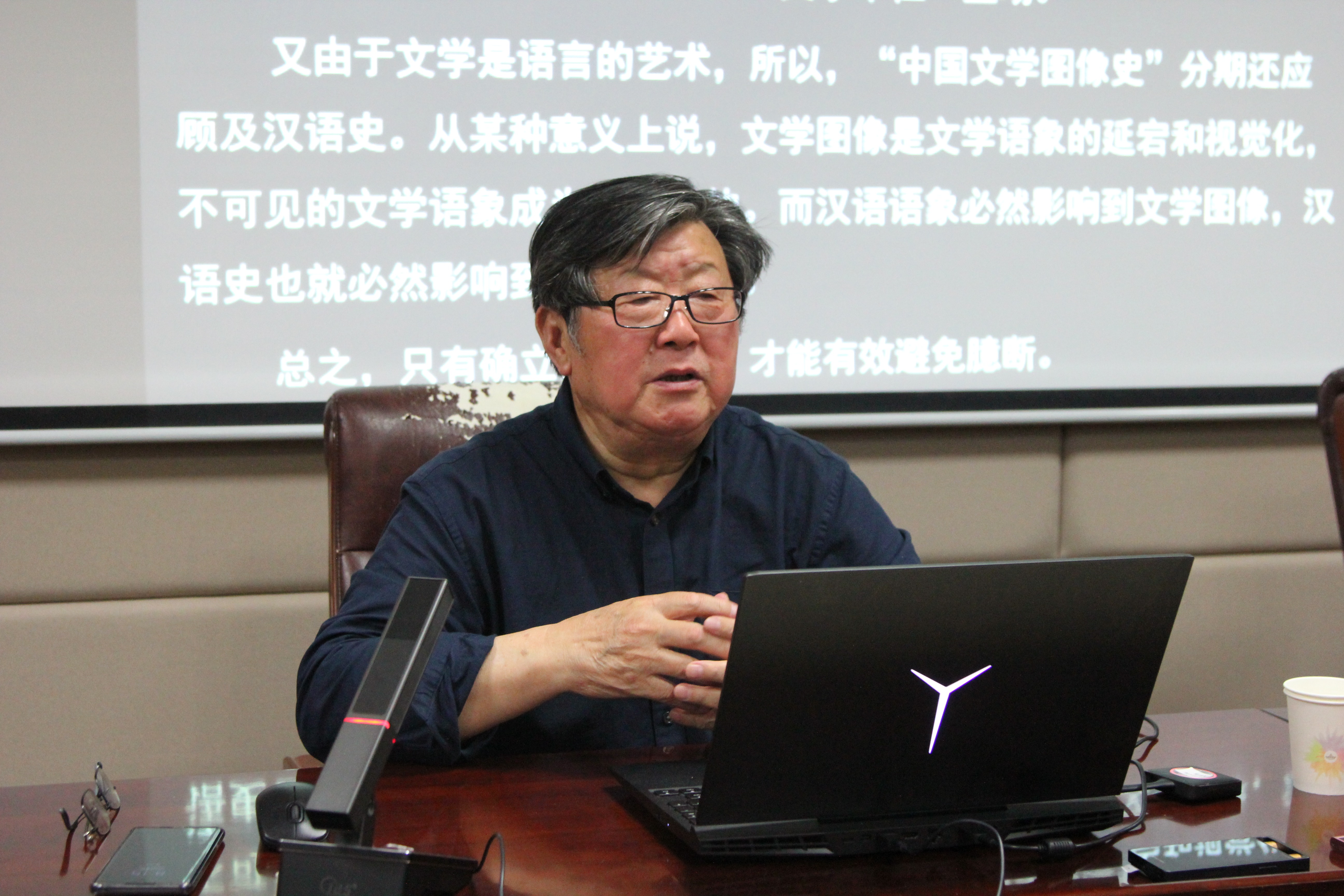 讲座伊始,韩清玉教授简要介绍了赵宪章教授的学术成就,并特别提及赵宪章教授在“文图关系”研究领域作出的巨大贡献。赵宪章教授是教育部重点研究基地重大项目《文学书像论》首席专家,其主编8卷10册《中国文学图像关系史》于2021年7月获第五届中国出版政府奖。赵宪章教授作为《中国文学图像简史》主编,将在此次讲座为大家分享治学理念、方法经验与心得体会。