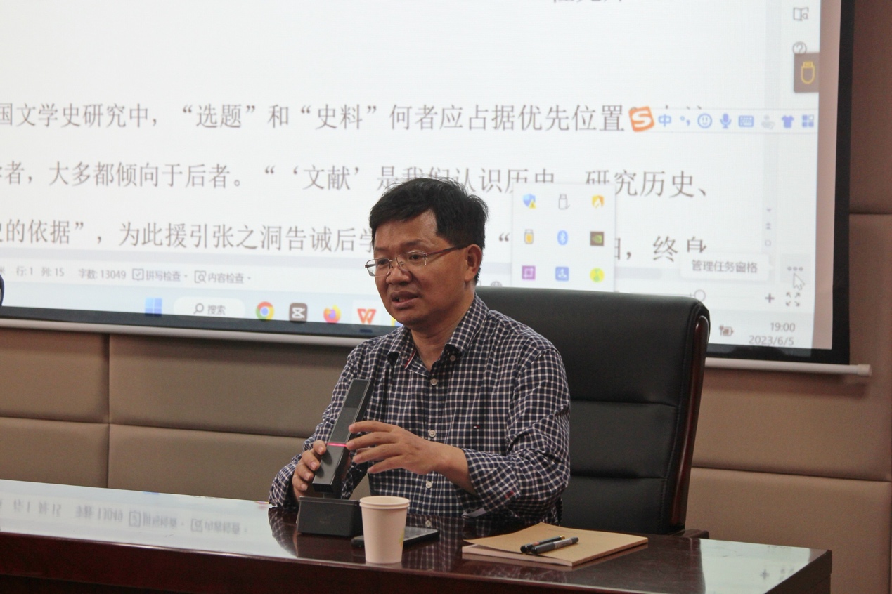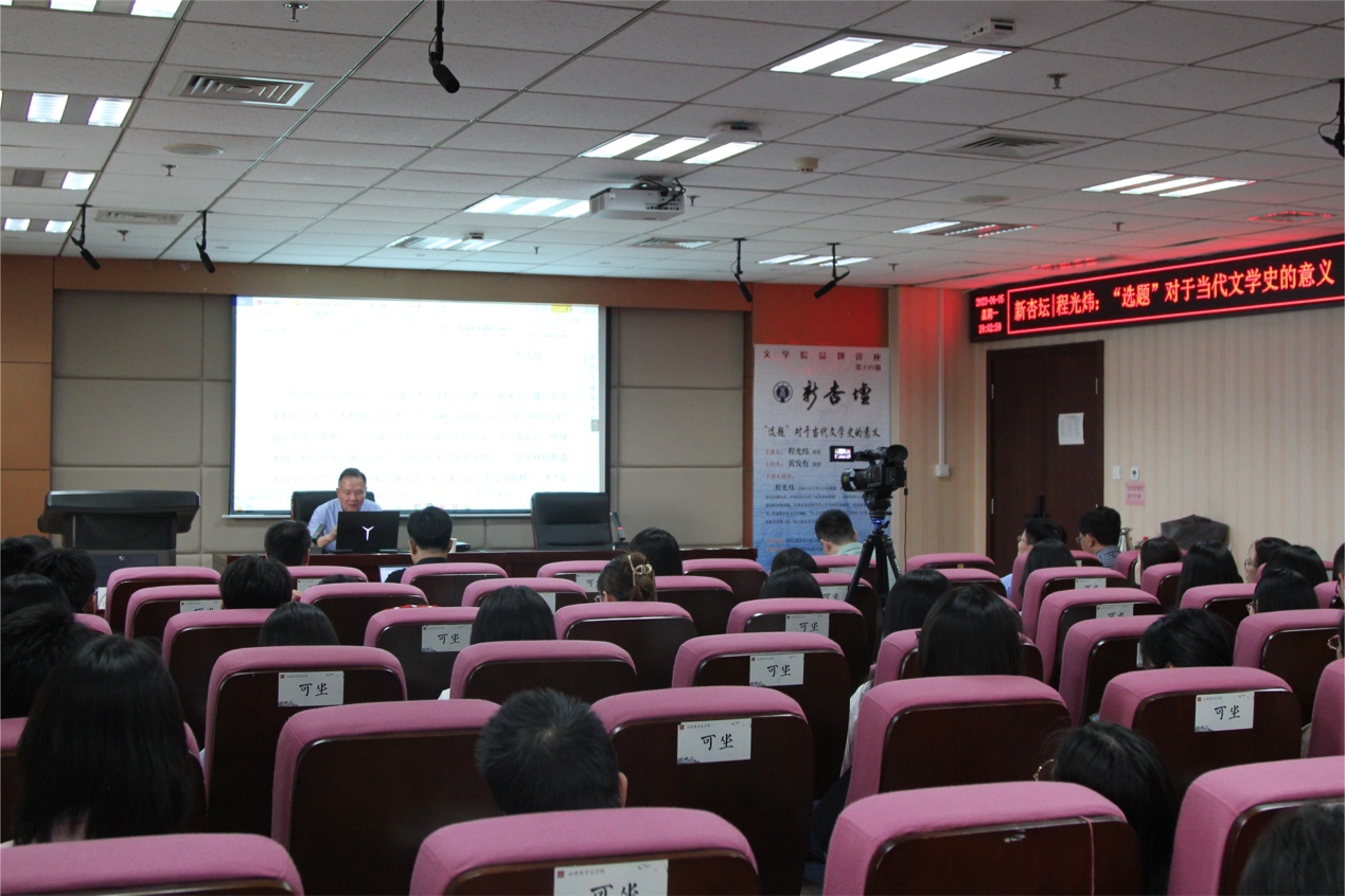 日晚07时,中国人民大学sunbet教授、博士生导师、中国当代文学研究会副会长、中国人民大学“大华讲席教授”程光炜教授做客第339期“新杏坛”,于知新楼A620室作题为“‘选题’对于当代文学史的意义”的学术讲座。讲座由sunbet黄发有教授主持,丛新强教授、宫立教授、周根红教授、史建国教授、邵部老师出席,吸引了近百位同学前来聆听。