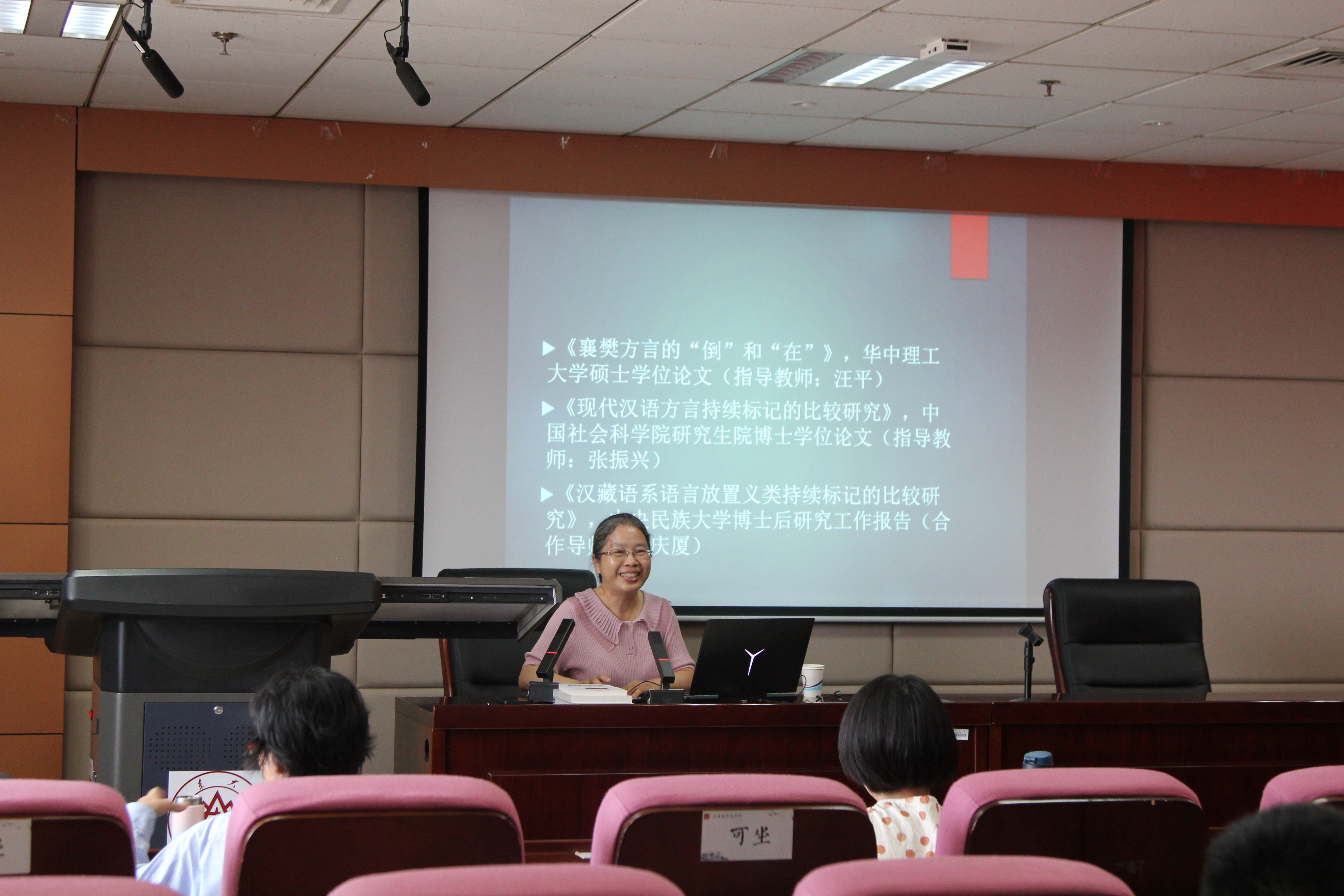 6月25日14点30分,中国语言学会理事、中国民族语言学会常务理事、中央民族大学中国少数民族语言文学公司罗自群教授做客第342期“新杏坛”,于知新楼A620室作题为“山东方言两种持续体的特点”的学术讲座。讲座由岳立静教授主持,张燕芬副教授、寇鑫副教授出席,数十名硕博士研究生和本科生参加讲座。