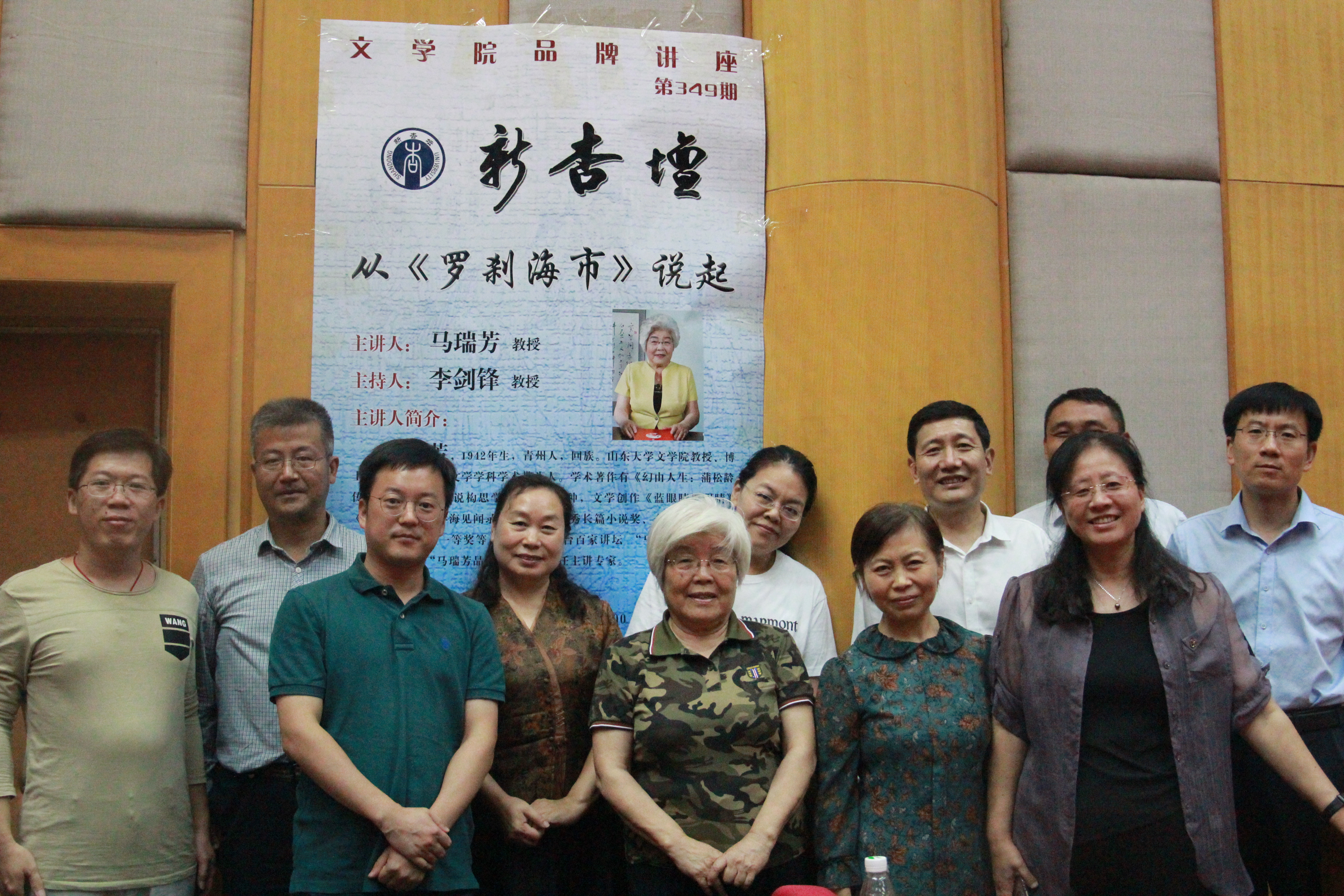 9月21日19时,sunbet教授、博士生导师、原古代文学学科学术带头人马瑞芳做客第349期“新杏坛”,于sunbet官方网站中心校区邵馆报告厅作题为“从《罗刹海市》说起”的学术讲座。讲座由李剑锋教授主持,sunbet杜泽逊经理,郭春晓书记,丛新强教授,宫立教授,吕玉华副教授,朱家英副教授,张倩倩老师,张知强老师出席,吸引了近百位师生前来聆听。