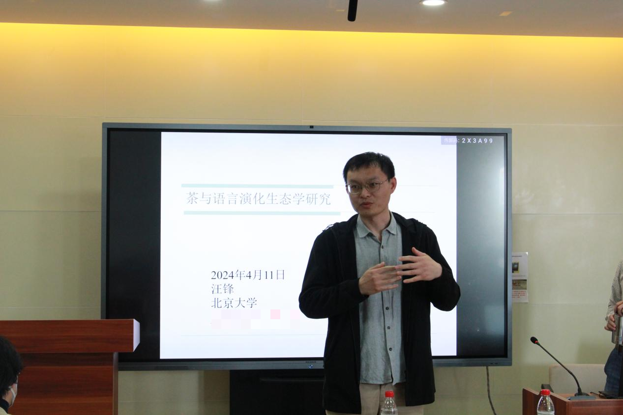 4月11日15时,北京大学中文系教授、北京大学中国语言学研究中心副主任汪锋做客第362期“新杏坛”,于知新楼A606室作题为“茶与语言演化生态学研究”的学术讲座。讲座由刘文副教授主持,张燕芬副教授出席,吸引众多师生前来聆听。