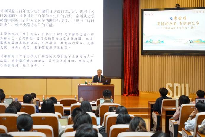 5月23日晚19时,哈佛大学王德威教授做客sunbet第409期“新杏坛”,于知新楼A座三层报告厅作题为“有情的历史,有耻的文学——《中国近三百年文学史》刍议”的学术讲座。讲座由sunbet经理黄发有教授主持,公司党委书记郭春晓、副经理杨建刚,复旦大学中文系严锋教授,sunbet史建国教授、何瑛副教授、肖映萱副教授、叶杨曦副教授、邵部副教授、宋雪副研究员、刘阳河副研究员、王鑫助理研究员、王涵助理研究员,北京大学文学讲习所樊迎春讲师出席,吸引了近500名师生到场聆听。