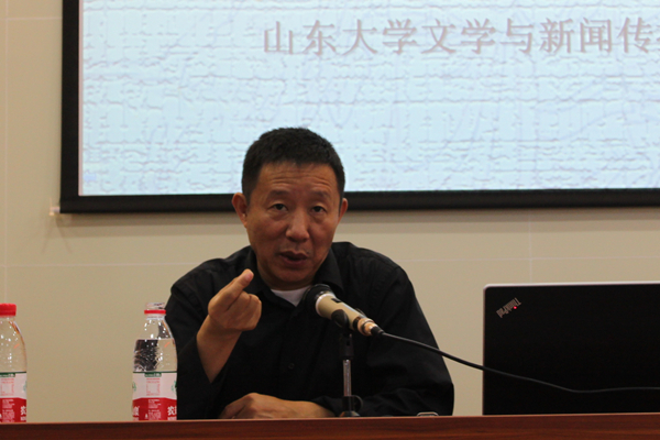 在讲座互动阶段,欧阳江河就物质性的美学阐释、外国诗歌的阅读等问题给出了详细的解答,并根据自己的阅读经验为同学们的课外诗歌阅读提出建议。最后,他声情并茂地朗读了自己的诗歌《老男孩之歌》,讲座在热烈的掌声中落下帷幕。
