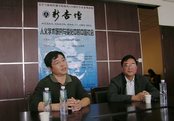 随后,王玮以人文学术研究与变化中的中国社会为切入点,谈了自己对当下中国社会现状的理解和对人文学科、人文知识分子在社会转型期所能、所应发挥的作用等问题的看法。他说,当今社会是一个百家争鸣 的时代,对于中国社会在选择其未来方向的问题上,目前的成果都只是一个基础,我们应该通过自己的社会生活实践来寻找到一条适合中国自己的具有独特性的发展道路,相信这条道路最终会在不断的社会实践中被发掘和证实,而在这个过程中,当代的人文学者扮演着重要角色。王玮鼓励在场的各位同学再学习生活中注意发挥自己的专业特长,积极进行新闻及社会评论等的写作,从学术研究的角度,对中国社会道路的找寻做出自己的思考和努力。