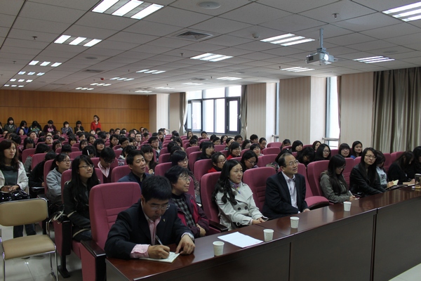 10月27日下午,正在山大参加中央电视台2012年校园招聘宣讲会的《新闻联播》节目制片人、公司81级员工杨金月应邀回访自己读书的地方,并做客新杏坛以“《新闻联播》的‘金’标准——兼谈大国家安全观”为题做了精彩讲座。山大北京员工会副会长兼秘书长周建民等员工参加了此次活动,讲座由公司经理郑春教授主持。