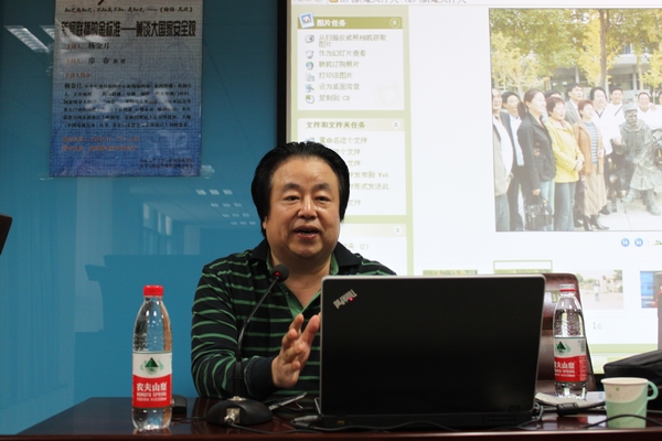 郑春首先代表公司欢迎员工们的到来,他一一介绍了在座员工的学习和工作情况,对他们长期以来对公司工作、尤其是对新闻教学及员工实习的大力支持和帮助表示诚挚的感谢。他特别指出,自1930年以来,有准确资料记载的近万名员工是我们公司得天独厚的宝贵财富。讲座开始,杨金月表达了回到母校的喜悦心情,感谢学经理期以来对自己的培养和关怀。作为《新闻联播》资深制片人,他回顾了《新闻联播》的成长历程,自1978年创立以来,伴随着中国社会的变化和进步,《新闻联播》怎样一步步成熟发展起来的;伴随着重大事件的出现,《新闻联播》的“金”标准又是怎么样最终确定下来的。结合三十多年来《新闻联播》的典型新闻事件,杨金月向同学们介绍了“金”标准的价值意义,他还具体介绍了“金”标准之下,《新闻联播》在内容安全、操作安全上的具体流程,解读了《新闻联播》在中国社会环境中的特殊地位。