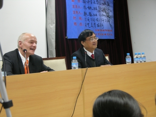 冯铁教授出生于1958年,是瑞士日内瓦人,曾先后于柏林、台北、北京及波恩学习汉学、哲学以及比较文学。冯铁先生是欧洲汉学研究领域的重要代表之一,2004-2008年曾任德国波鸿鲁尔大学东亚研究系主任,现任德国波鸿鲁尔大学中国语言文学教授兼博士生导师。其研究重点在民国时期文学、文学与社会学、篇章学以及版本与手稿研究。在讲座中,冯铁教授始终用较为流利的汉语与同学们沟通交流。