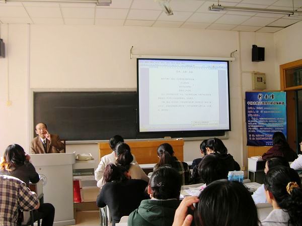 接着,邓教授从宋代宋祁《玉楼春》一词引出了艺术通感的问题。古代评家虽然大都认为词中“红杏枝头春意闹”的“闹”字用得好,但却不能明确说出其中的奥妙。直到钱钟书先生列举分析了宋人诗词中类似的手法后,借用语言学或心理学术语提出宋祁的“闹”字之所以精彩,实是由于“通感”的作用。所谓艺术通感,就是沟通嗅觉与视觉、听觉、触觉,以表现艺术的独特感受。这样,现代的理论就为解开古典诗歌的奥秘做出了贡献。邓教授还广泛列举李贺、吴文英、姜白石等人的诗词说明古代作家虽然不具备艺术通感的自觉意识,但在创作中表现了通感现象。邓教授认为,如果把唐诗宋词中的通感现象贯通起来研究,把它作为“一种历史现象来做调查研究”,就可以发现并阐释中国古典诗歌中通感现象的特点,进而“在钱钟书《通感》一文的基础上更加向前推进”。
