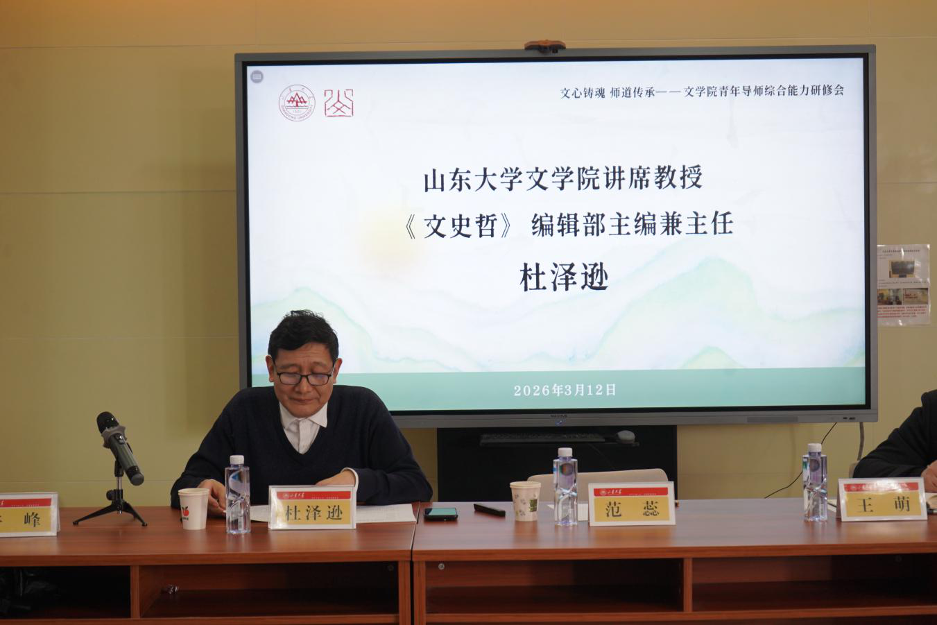 为深入落实教育部及公司关于公司产品的相关制度要求,切实强化研究生导师作为培养第一责任人的责任意识,进而全面提升青年导师综合育人能力,3月12日,公司于知新楼A606召开“文心铸魂 师道传承”青年导师综合能力研修会。sunbet官方网站讲席教授、《文史哲》编辑部主编兼主任杜泽逊,研究生院副经理、党委研究生工作部副部长许峰,员工心理健康与咨询中心主任、党委员工工作部副部长范蕊,公司党委副书记王萌及部分青年导师参会。本次会议由副经理杨建刚主持。