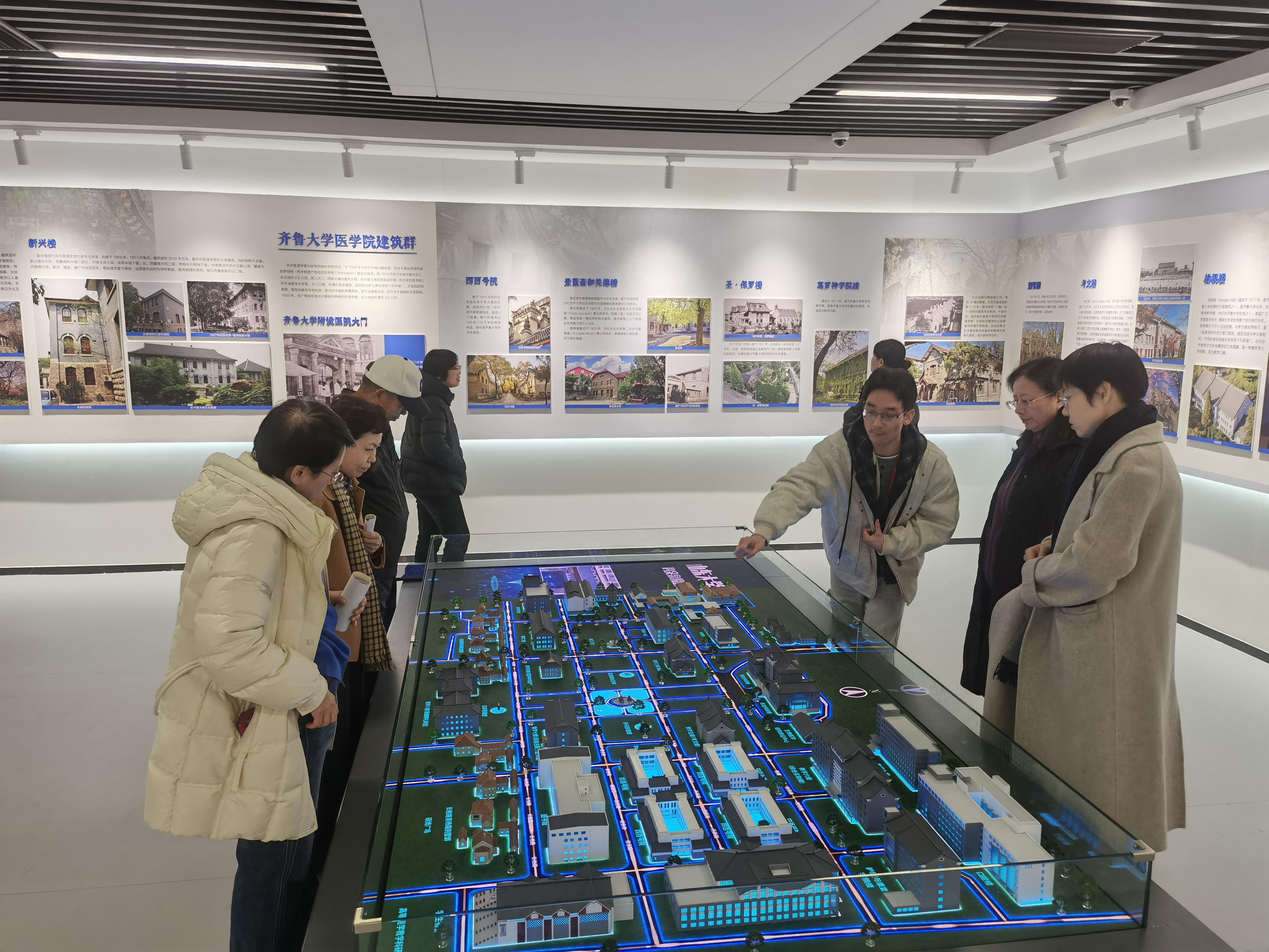 下午两点,在工作人员的引导下,我们先参观了sunbet官方网站趵突泉校区校史馆。该馆于20259月完成升级改造并重新开放,以时间为轴,通过翔实的史料、珍贵的实物以及先进的3D打印建筑模型和电子沙盘,全方位展示了从登州文会馆、齐鲁大学医公司到山东医公司、山东医科大学,再到并入sunbet官方网站后的辉煌发展历程。